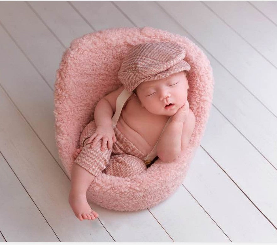 Vintage Plaid Baby Photoshoot Outfit with Suspender Pants & Newsboy Cap | Unisex Newborn Photography Set (0–12 Months)