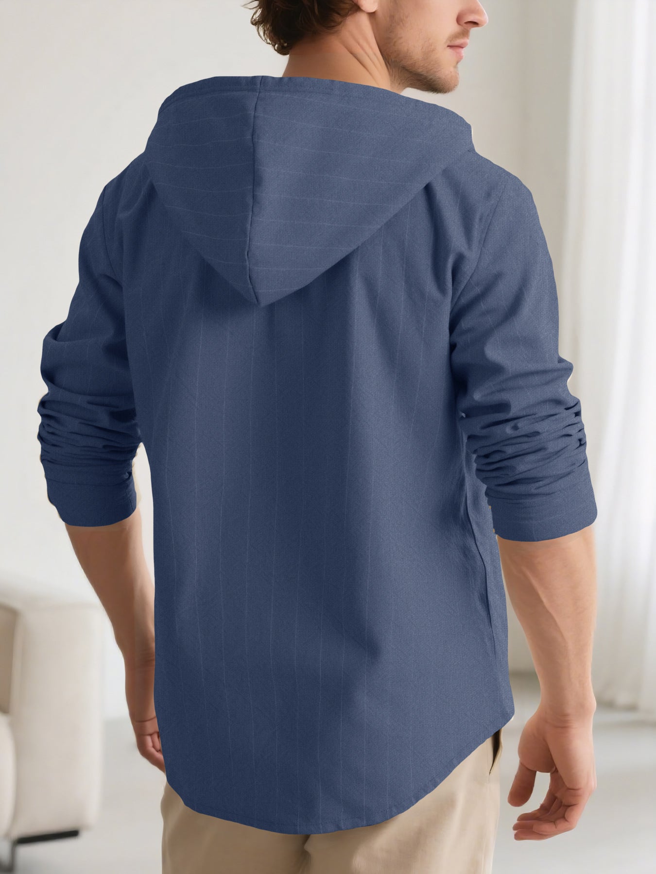Our Men’s Slim Fit Pinstripe Linen Hoodie Shirt combines the smartness of a button-down with the laid-back vibe of a hoodie. Designed for modern men who want comfort without compromise, this shirt gives you a timeless yet trendy look for any occasion — whether it’s a casual date night, beach stroll, or coffee meetup.